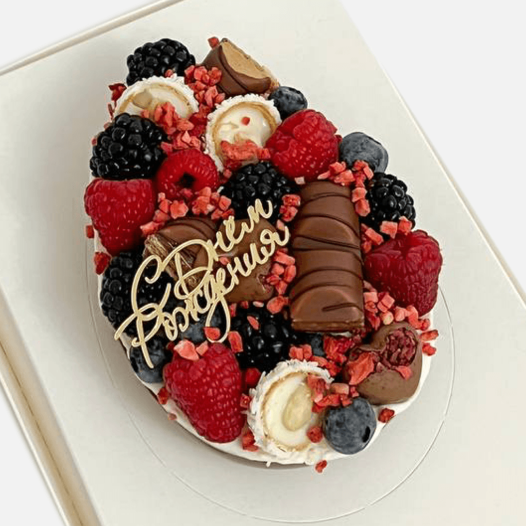 Ягодный декор, декор сладостями, серебряные или золотые брызги, шоко-цифры входят в стоимость